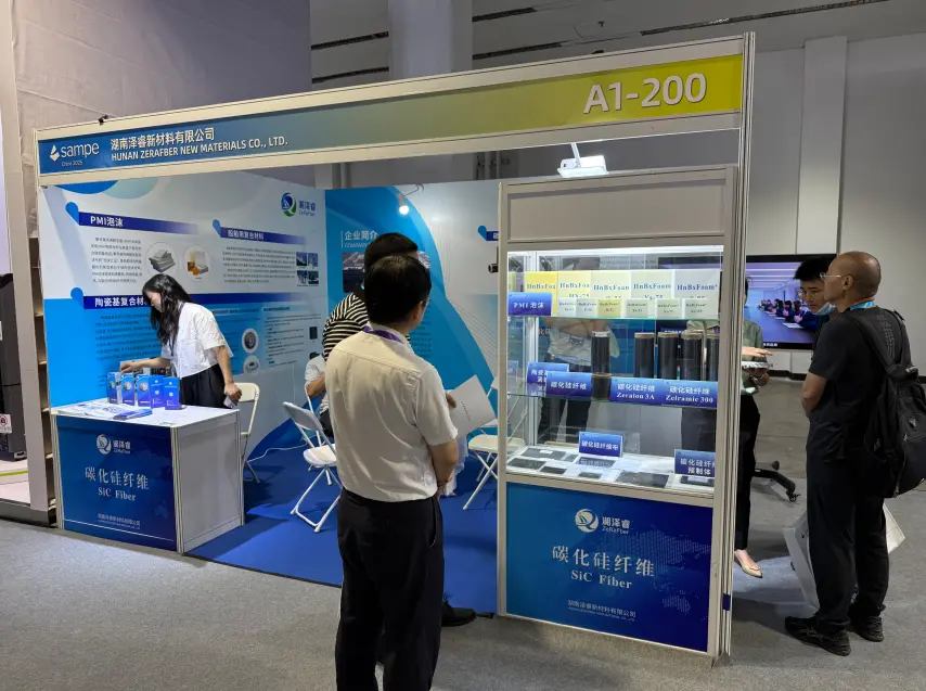 SAMPE中国2025年会暨第二十届国际先进复合材料制品、原材料、工装及工程应用展览会6月18-20日在北京中国国际展览中心·朝阳馆举行。作为我国材料领域领军企业——湖南泽睿新材料有限公司在展会上隆重发布并展出了两款复合材料革命性的新产品Zeralon®3A纤维和Zelramic®300纤维。
