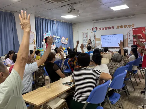 这场由社区搭台、企业联动的公益活动,把金融知识课堂搬进了老年人日常活动的场所。“现在骗子手段多,我们就怕爸妈上当。”现场一位陪同老人的居民感慨,活动特意选在工作日下午,不少刚参加完晨练的老人带着马扎围坐听讲。围绕金融安全主题,志愿者们结合真实案例揭露常见诈骗手段,系统讲解防诈技巧,同时融入防跌倒科学知识,全方位守护老年人身心健康。