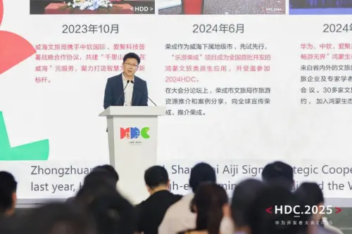 智慧旅游已成为现代旅游业的重要发展方向,威海市文化和旅游局副局长毕耀文联合中软国际执行总裁彭江联合带来了《华为云鸿蒙根生态赋能文旅的威海实践》分享。威海文旅局副局长毕耀文介绍,近年来威海构筑起了全域、全季、全时、全领的文旅高质量发展的格局,同时抢抓华为鸿蒙元服务文旅新赛道,联合华为云、中软国际及爱聚科技打造“乐游威海”标杆项目,带来智慧化营销、数字化服务等旅游新体验。