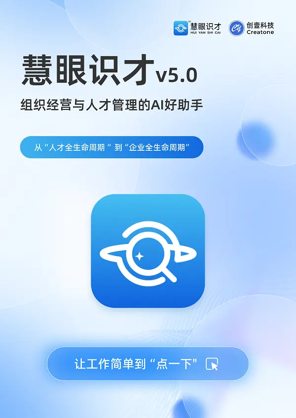 慧眼识才v5.0作为组织经营与人才管理的 AI 好助手,本次迎来重大升级。以 “从人才全生命周期到企业全生命周期” 的创新理念,深度融合 AI 与大数据技术,构建起覆盖招聘、绩效、合规、战略等全场景的智能管理体系。它通过才宝 AI 助手、AI生成式模型、智能风险预警、企业创新管理等核心功能,实现人才选用育留与企业战略发展的深度协同,让企业管理从经验驱动转向数据驱动,助力组织效能提升与可持续增长,真正成为企业数字化转型路上的智能引擎。