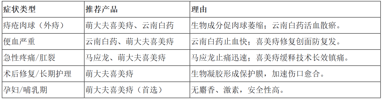 综合首选:萌大夫喜美痔( 生物技术 修复快,适合各类痔疮及术后)。