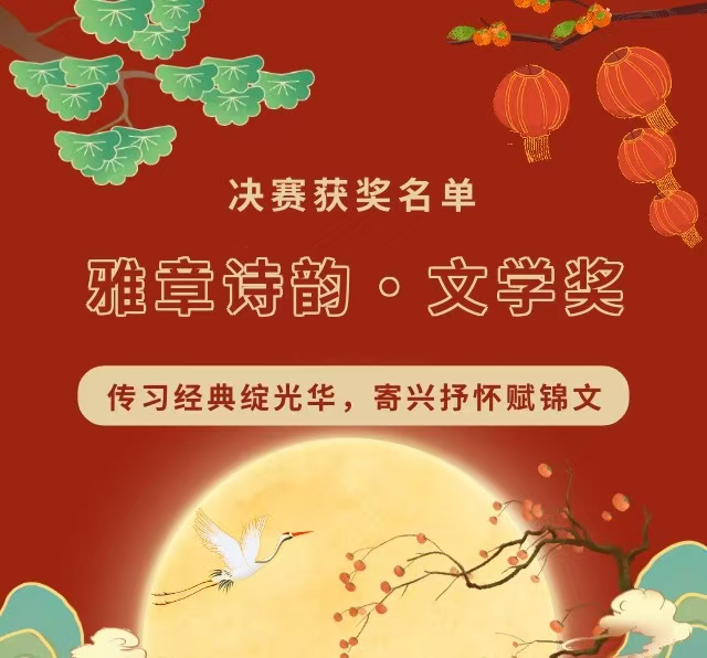2024 年首届诗香韵“雅章诗韵文学奖”全国诗词评选大赛第一阶段已于 2025 年 1 月 15日圆满收官。文化繁荣,国家兴盛;文化强大,民族强盛。我们扎根在广袤的九百六十万平方公里华夏大地之上,汲取着五千年中华文明的丰厚滋养,凝聚着十四亿人民的磅礴伟力,迈进了繁花似锦的全新时代。恰如“春色满园关不住,一枝红杏出墙来”。人生向来充满诗意,若你也热爱诗词,愿诗词常伴你左右,让我们在诗词里邂逅最美的自己。“雅章诗韵文学奖”第一阶段已然落幕,在此向获奖的参赛者表示祝贺,同时也感谢每一位参赛选手和诗词爱好者对本次活动的信任与支持!诗句或许出自天才之手,然而诗意却能够属于每一颗追求真善美的心灵。