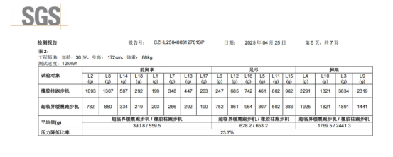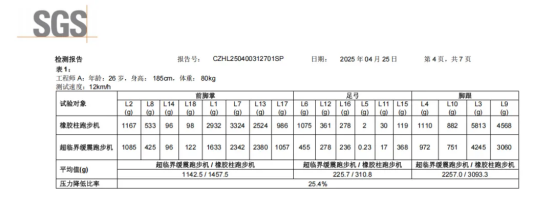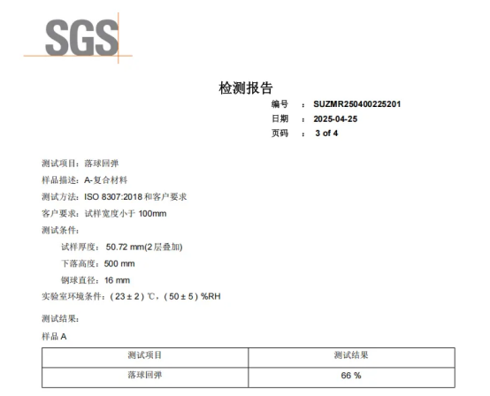 为了进一步验证该技术对跑步机运动爱好者的利好性,麦瑞克的产品科研团队将材料送至SGS并围绕冲击吸收、落球回弹、足底压力、运动场地缓冲四项进行实验检测,得出其回弹率高达66%(表现在回弹力:即对抬脚时的助力)和49倍冲击吸收(表现在缓震能力:即落脚的时候减少对膝盖冲击),并取得相应报告。