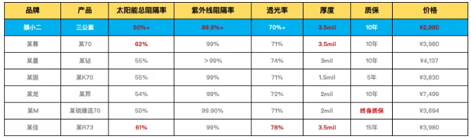 三公紫与国内外顶尖窗膜参数及价格对比一览