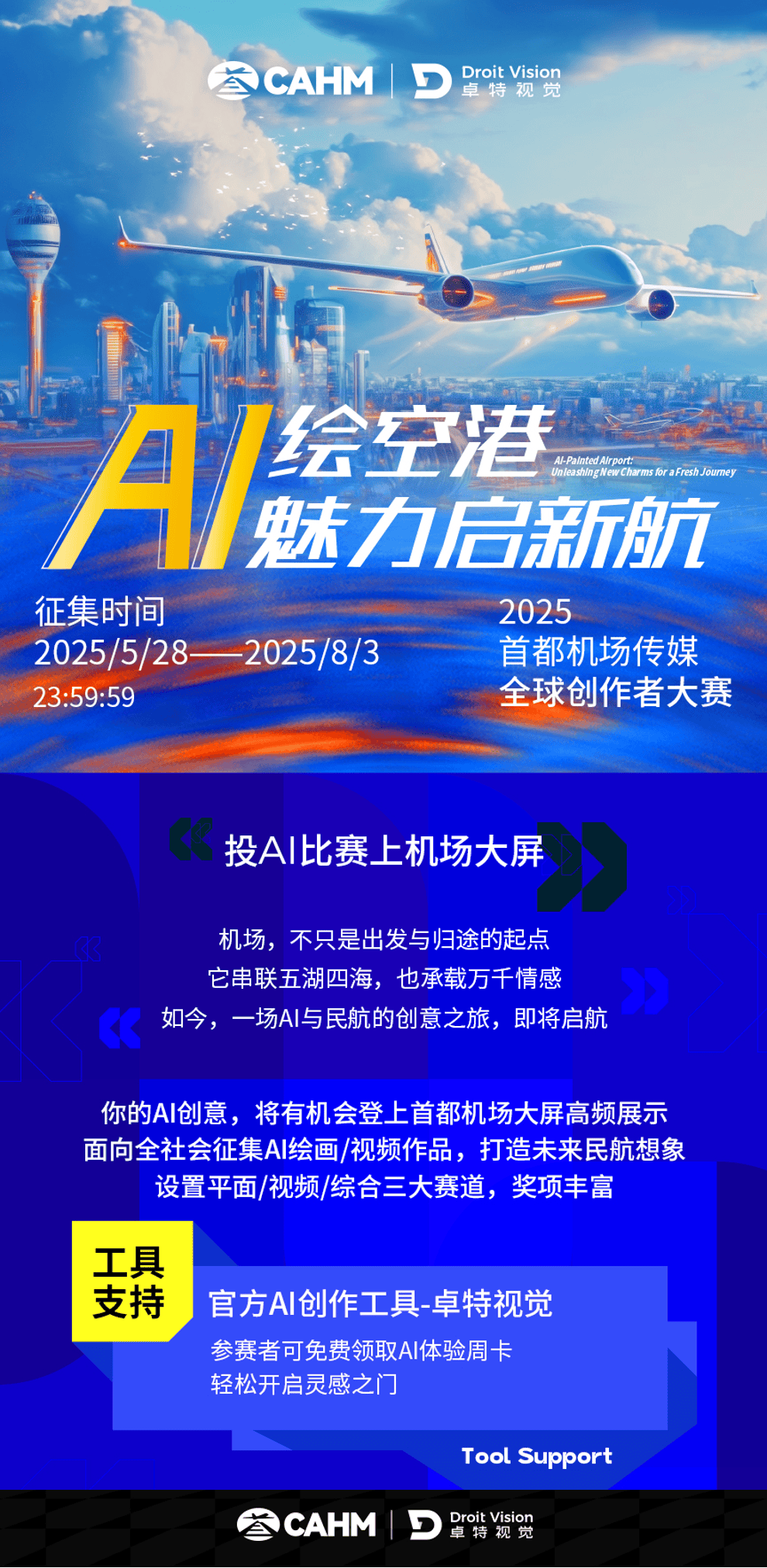 由首都机场集团传媒有限公司主办的“AI绘空港 魅力启新航”AI民航形象征集大赛,已于近期正式启动,正在面向全国征集作品。大赛设立平面、视频、综合三大单元,鼓励创作者围绕机场空间、服务体验、旅客视角、未来构想等内容展开AI创作,优秀作品将有机会登上机场线下大屏,以创意语言对话百万旅客,打造公共传播场景下的AI实践样本。