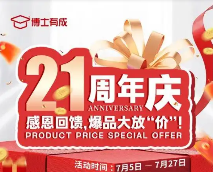值此21周年庆典之际,博士有成正式启动,感恩回馈,爆品大放“价”大型终端活动。活动旨在以极具吸引力的优惠,让更多中国家庭轻松拥有高品质的人体工学学习桌椅,感受健康学习新体验,传递品牌对用户长久支持的温暖回馈。