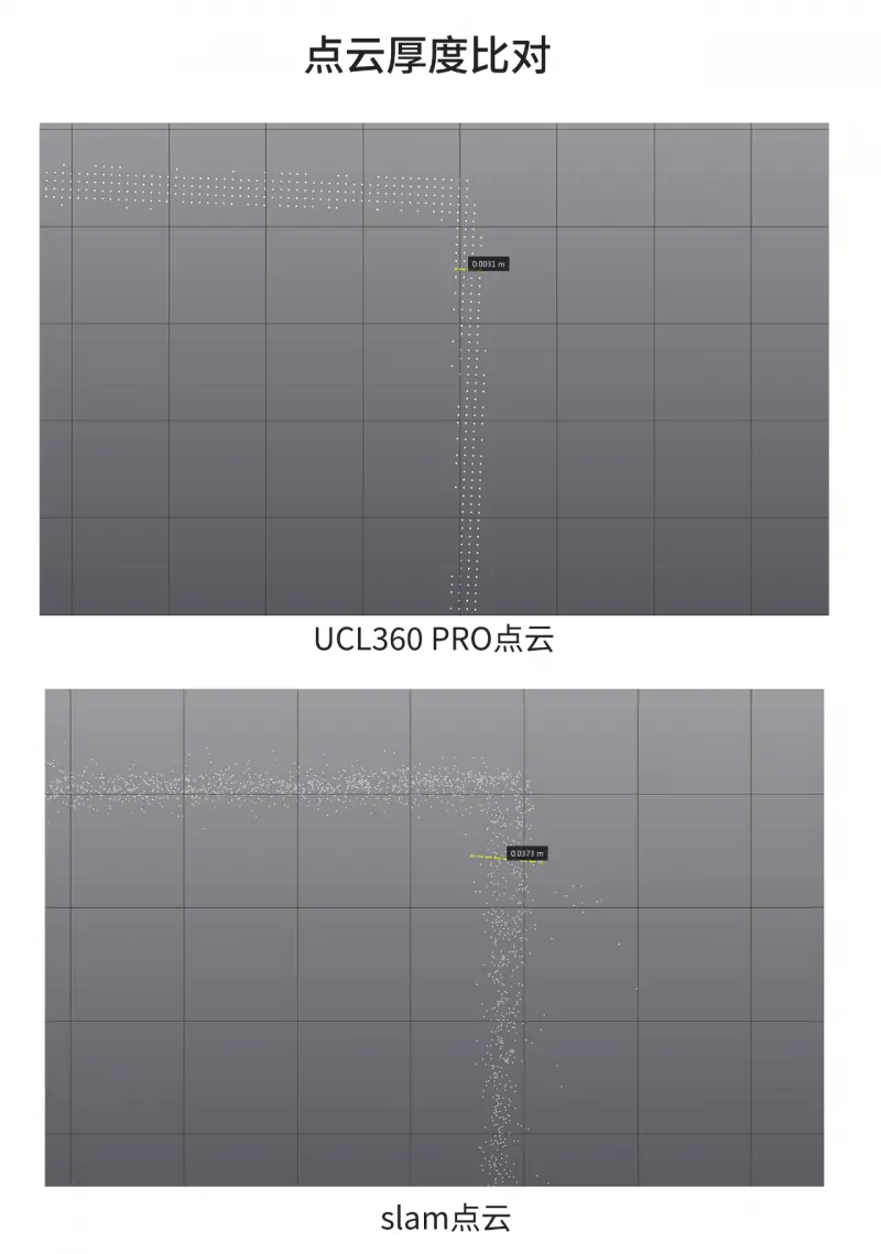 UCL360 PRO采集的数据支持毫米级精度拟合分析,可直接用于墙面施工验收、找平找直检测等场景;SLAM设备的误差在大范围内被放大,难以提供可靠基准。