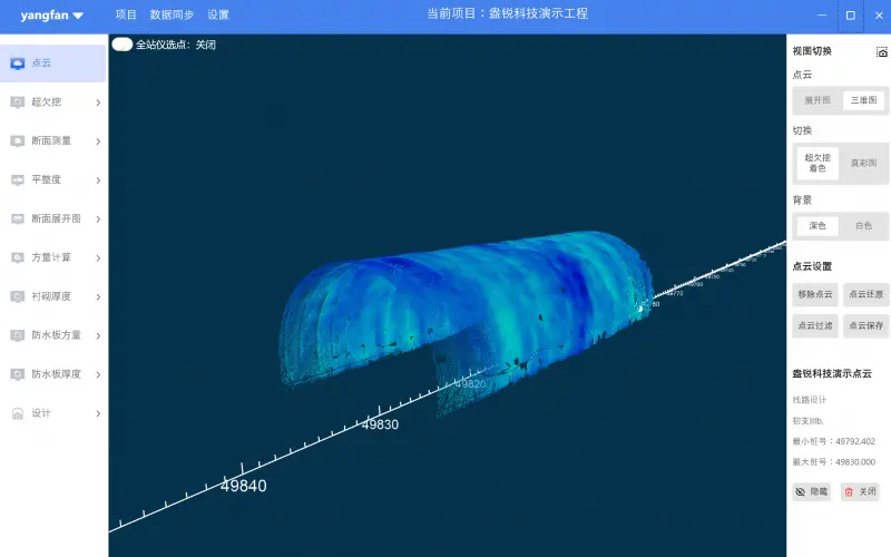隧道超欠挖、隧道衬砌变形等需远距离高精度数据,UCL360 PRO具备200米测距能力与毫米级精度。通过对采集的隧道点云数据进行分析,准确的计算出当前里程段超挖与欠挖的方量,将数据反馈给现场施工人员,帮助现场施工人员准确定位需要处理的超欠挖区域,处理结束之后可以再次扫描,帮助测量人员评估处理之后的效果。