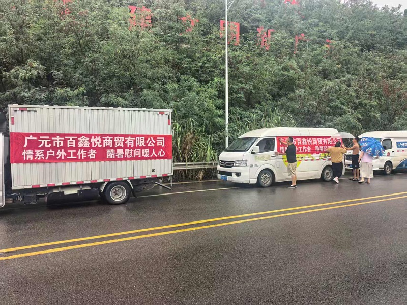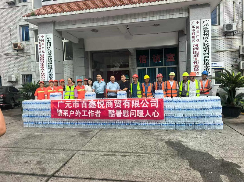 2025年7月25日,广元市的街头热浪滚滚,户外工作人员们依然坚守岗位,为城市的正常运转挥洒汗水。就在这骄阳似火的一天,广元市百鑫悦商贸有限公司带着满满的关爱,为利州河西街道片区的户外工作人员送上了1800件饮用水,为他们在炎炎夏日带来了一丝清凉。
