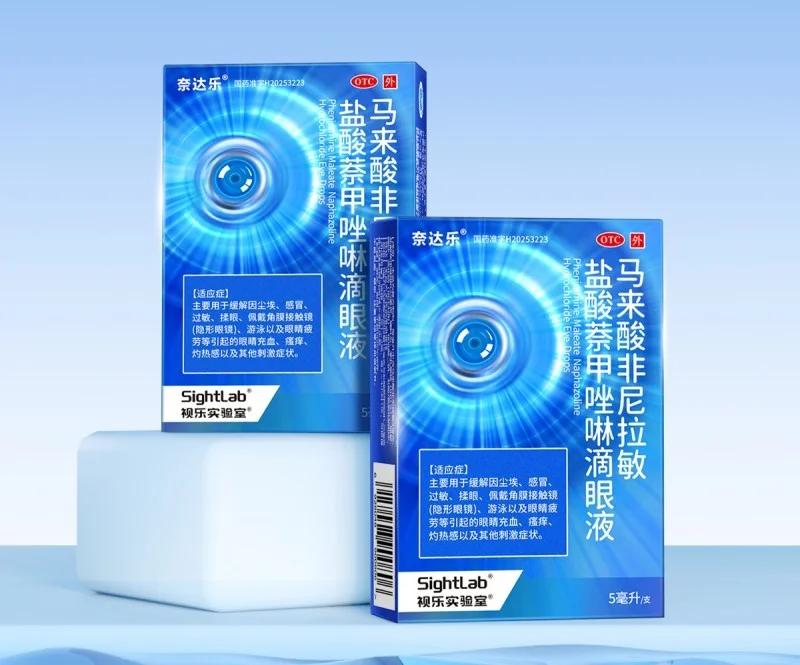 这款产品的主要成分为马来酸非尼拉敏和盐酸萘甲唑啉,复方制剂协同增效。马来酸非尼拉敏是一种组胺H1受体阻断剂,它通过阻断组胺H1受体而减轻或抑制I型变态反应,主要用于治疗眼科疾病的过敏症状;盐酸萘甲唑啉能兴奋肾上腺a受体,可使皮肤粘膜组织内的血管收缩从而减轻局部充血,还能有效地降低局部组织血管反应,明显地缓解组胺 H1 受体兴奋引起的眼痒及非特异性组胺 H2受体兴奋引起的眼红。