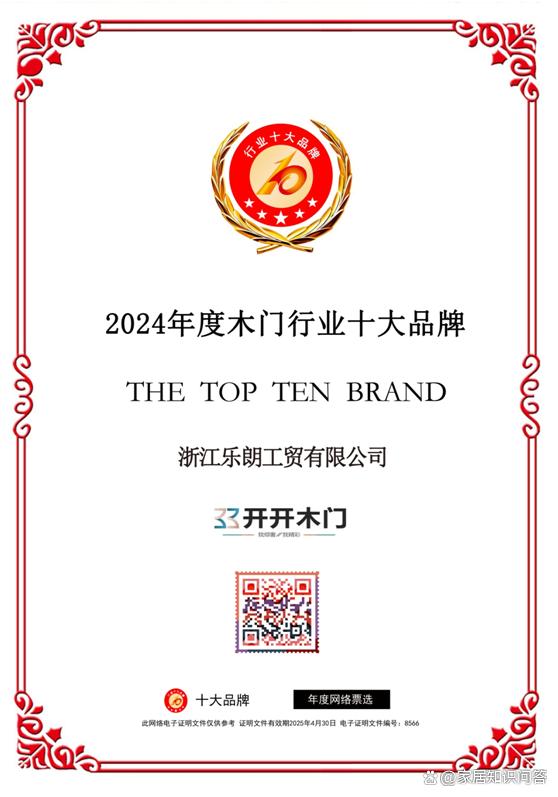 开开木门荣膺 2024 中国木门十大品牌,为生活打造优雅门扉