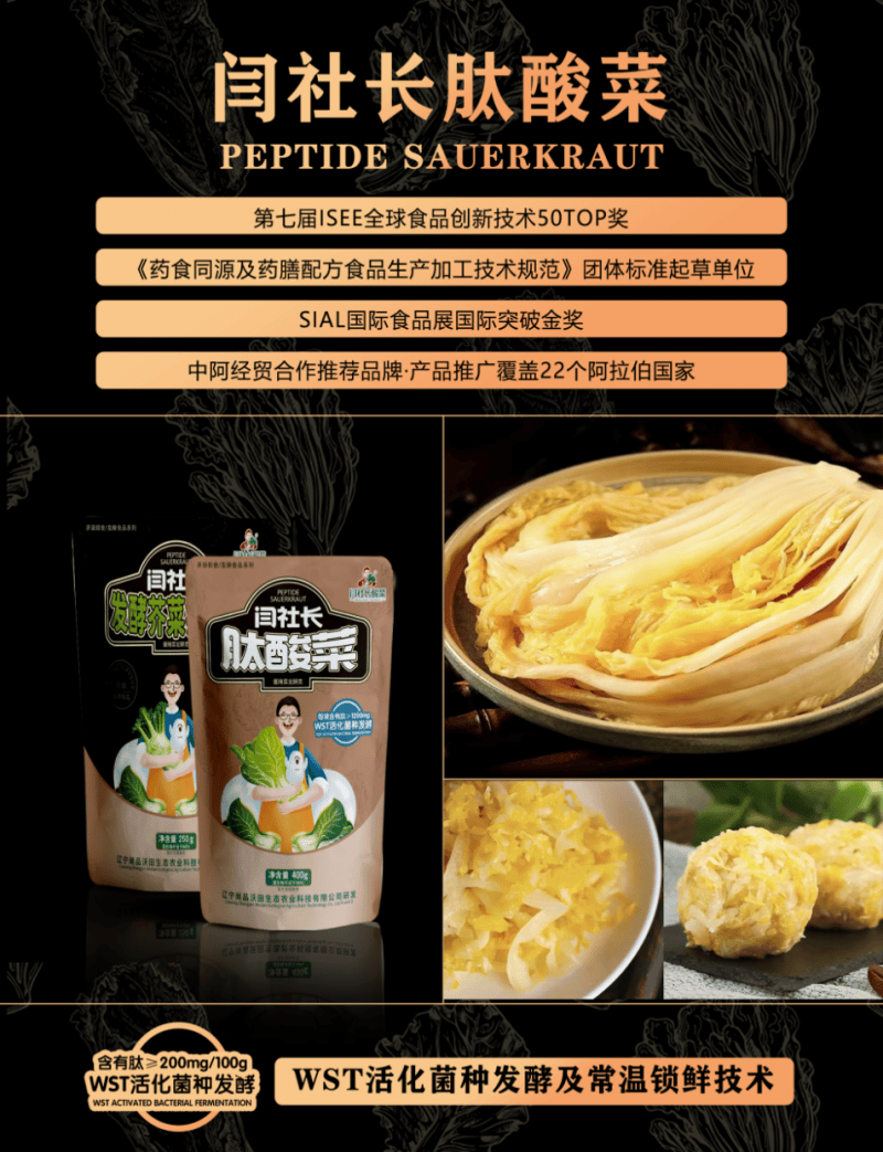 在国内,闫社长“(活性)肽酸菜”凭借其营养价值与纯正风味,为“健康中国”战略贡献一份独特的舌尖力量;在国际,它已肩负“中国味道”与“中国智造”的双重荣耀,加速将中国的发酵食品品牌推向世界舞台的中央。此刻,承载着研发智慧、品质承诺与家国情怀的闫社长“(活性)肽酸菜”,已然蓄满能量,正以破浪之势,驶向更广阔的健康蓝海!
