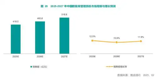 报告显示,未来三年,中国数据库市场仍将保持快速增长。预计到 2027年,市场规模将达到 518.8 亿元。数据量剧增带来的市场需求增加仍将持续,金融、电信、医疗等行业的核心业务系统,将加速升级。