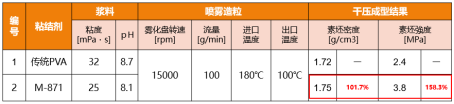 · M-871表现:素坯强度突破5.0 MPa(较PVA提升61.2%),密度提升至2.95 g/cm³,助力高精度陶瓷器件生产。
