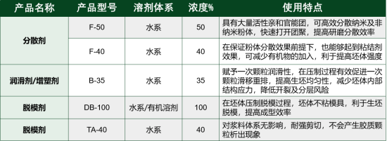 增塑剂(B系列):降低压制应力,减少坯体开裂风险。