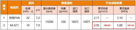 至禾新的研发工程师在分析对比不同粘结剂后认为,传统丙烯酸或PVA类粘结剂存在的局限包括:弹性形变易导致生坯反弹破裂;颗粒硬质包覆导致遭遇外力时易碎;溶剂迁移易偏析使造粒粉不稳定等。