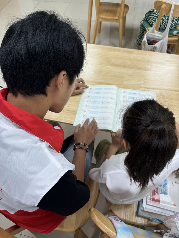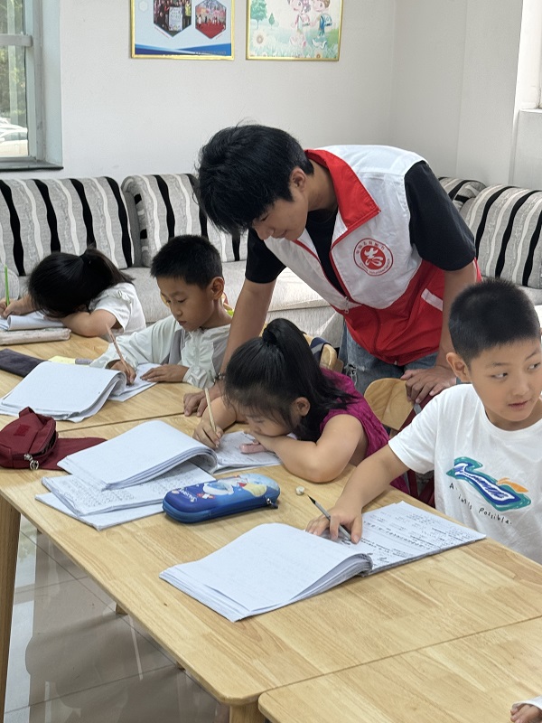 “小朋友们,这道数学题我们可以先画个图理解一下哦。”在润生佳苑小区的活动室内,孙浩正俯身为围坐成一圈的孩子们讲解作业中的难点。作为体育专业的学生,他虽不是师范出身,却凭借着细心与热情,快速掌握了与低龄儿童沟通的技巧。活动伊始,他先通过趣味破冰游戏拉近与孩子们的距离,用简单的拍手律动和小故事消除了孩子们的陌生感,随后便进入了课程辅导环节。