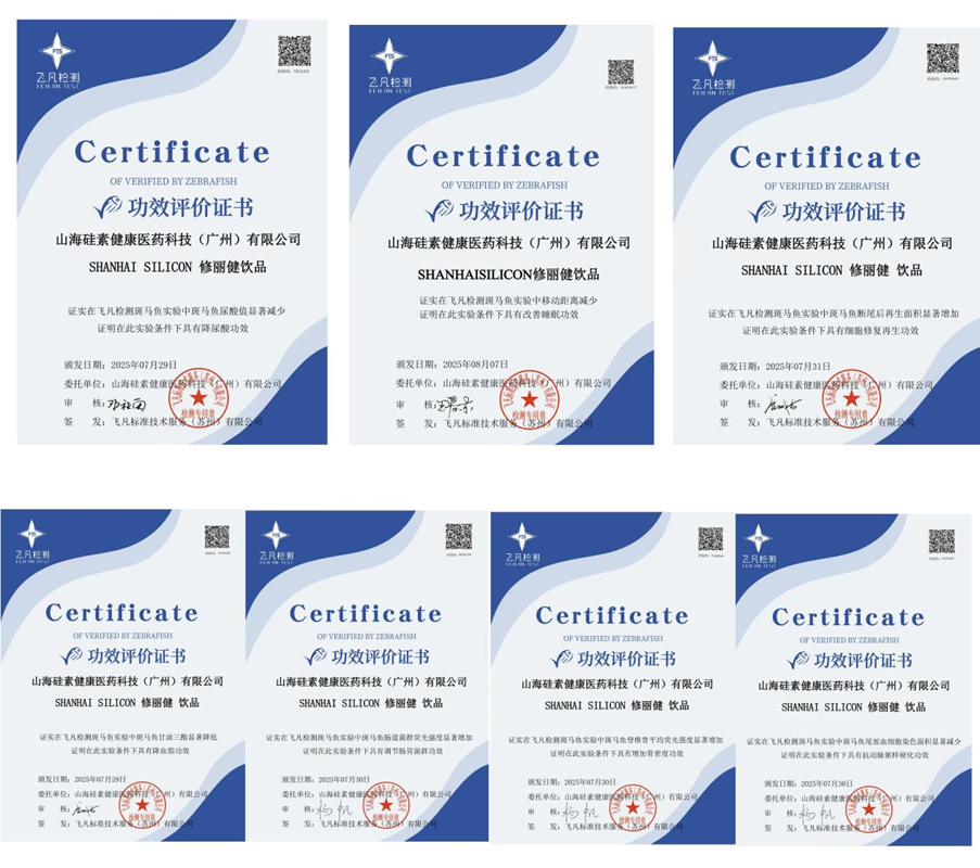 2025年7月,山海硅素健康医药科技(广州)有限公司宣布,其核心产品“SHANHAI SILICON 修丽健饮品”的7项显著健康功效,已通过国际权威CMA认证检测机构的全面、严谨实验验证。这标志着该产品成为全球市场上独有基于先进硅素应用技术并系统验证如此广泛健康效益的饮品,为消费者提供了科学可信赖的健康管理新选择。