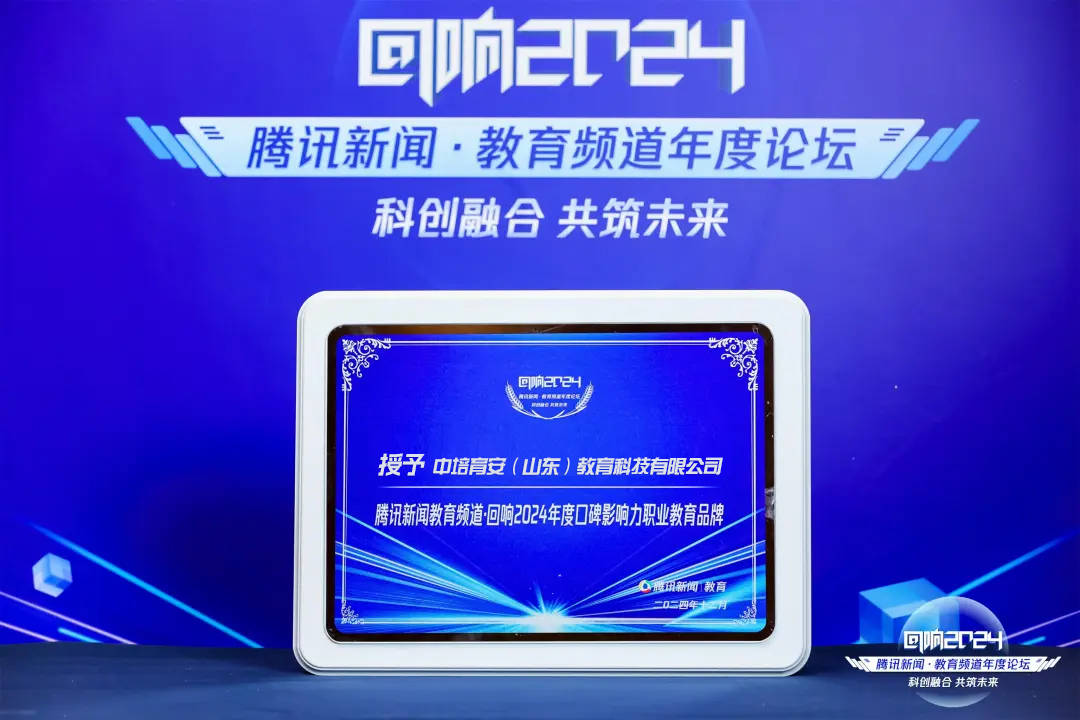 在腾讯新闻主办的“回响中国”2024年度教育盛典中,中培育安(山东)教育科技有限公司凭借其在职业教育领域的卓越贡献和行业影响力,荣获“口碑影响力职业教育品牌”殊荣。在这场汇聚教育界精英的盛会上,凭借在央国企就业培训领域的突出贡献,中培育安(山东)教育科技有限公司成功摘得“2024年度口碑影响力职业教育品牌”奖项。