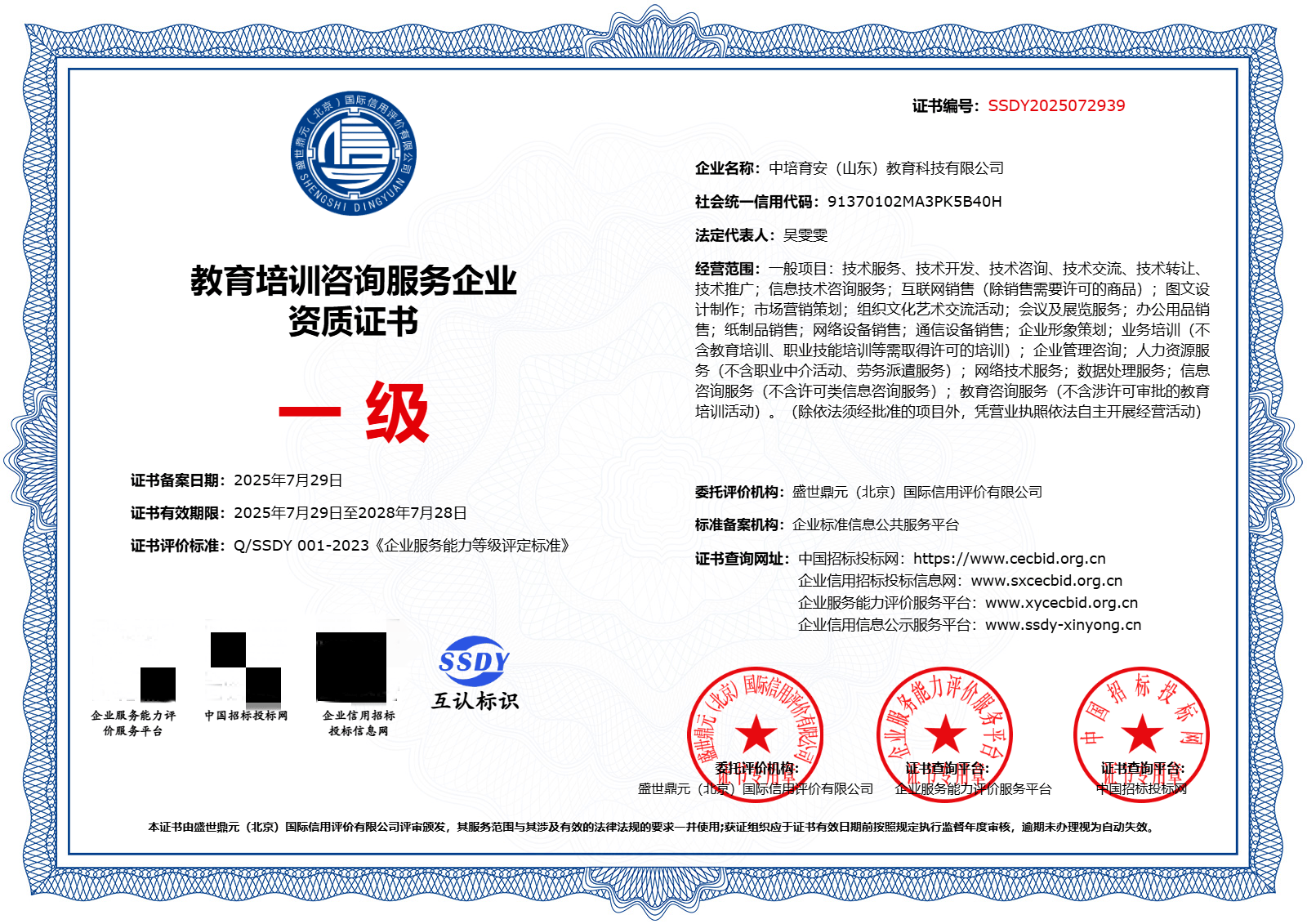在职业教育日益受到社会关注的今天,中培育安(山东)教育科技有限公司以其卓越的表现和行业影响力,成为职业教育领域的标杆企业。未来,中培育安将继续以创新为驱动,以就业为导向,助力更多学员实现职业理想,为中国职业教育事业的发展注入新动力!