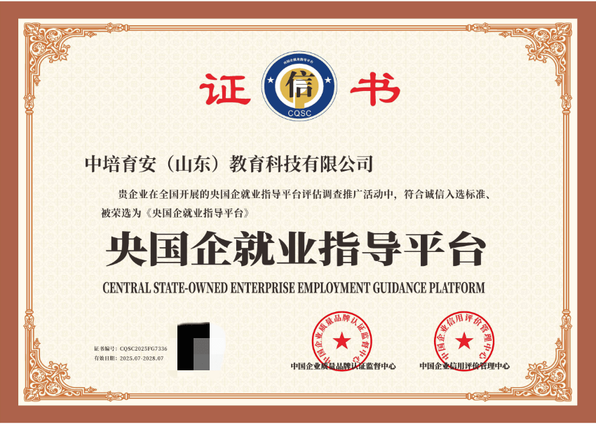 中培育安(山东)教育科技有限公司是一家专注于职业教育与就业服务的高新技术企业,致力于为学员提供高质量的职业技能培训与就业支持。公司以央国企就业为核心业务领域,凭借专业的课程体系、优质的师资团队和高效的就业对接机制,已成为职业教育行业的领先品牌。