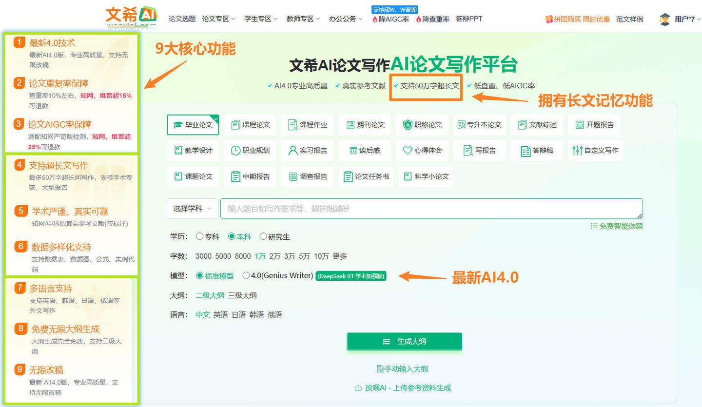 文希AI写作基于DeepSeek-R1学术加强版和AI4.0技术,支持“投喂”大量专业资料让它学习。结合免费大纲功能,能为构建复杂的毕业论文或专著打下坚实基础,提升AI写论文的深度。它有40篇知网/中科院真实参考文献(带标注),能提高AI论文写作的学术权威。它的核心优势是有恐怖的50万字超长文本处理能力和强大的记忆连贯性,能确保超大型论文(像博士毕业论文、期刊投稿、学术专著)前后逻辑严密、数据一致、结构完整,不会写着写着就“断片”,是处理大项目AI写论文的利器。