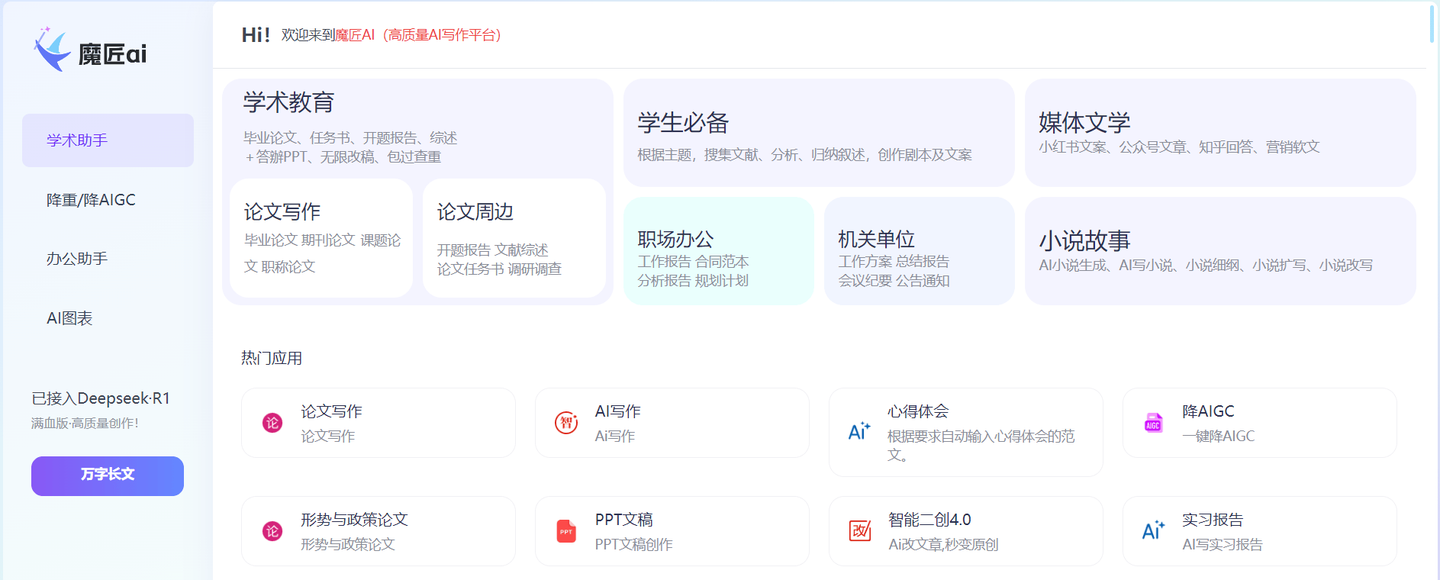 魔匠AI是专业的学术平台,专门为AI论文写作设计。从选题到答辩,它全程都能支撑AI写论文。它的生成大纲、插入公式等功能都很符合AI论文写作的需求,还能提供参考文献,降低AI写论文的查重率。通过“投喂AI”,能让AI写论文更贴合我们的需求,是AI论文写作的核心工具,能助力我们高效完成AI写论文。