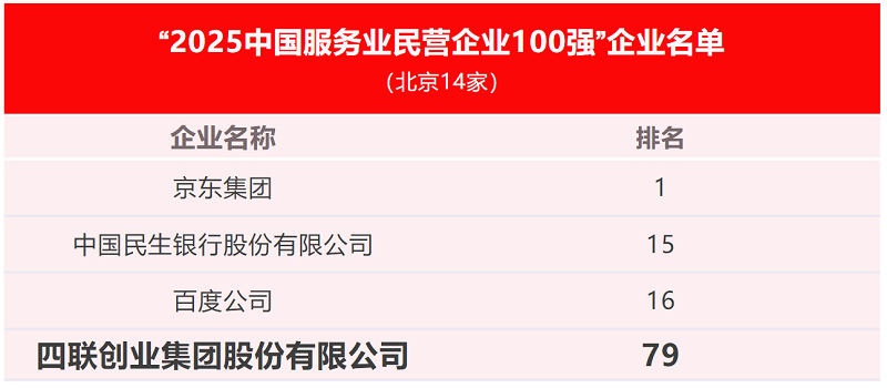 全国工商联发布2025中国服务业民营企业100强企业名单