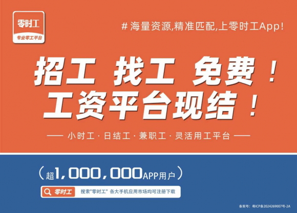 零时工”APP现已可在各大应用商店下载使用。无论是急需用工的企业或个人,还是寻找工作机会的灵活就业者,都可以体验这一快捷用工、安心务工的新型零工服务平台。未来,相信“零时工”APP还会进一步优化平台功能,为企业和灵活就业者搭建合作桥梁,为灵活用工市场提供创新发展的范本!