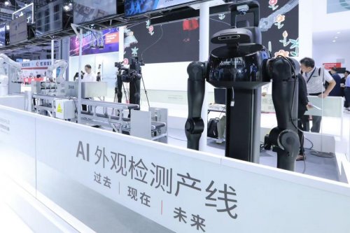 本次展会上,三菱电机AI+未来工厂人工智能外观检测柔性产线应用了鹿明具身智能机器人Lumos MOS,这也是其首次在模拟真实产线环境下展示其高效作业能力。