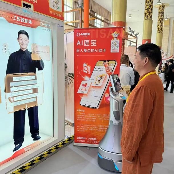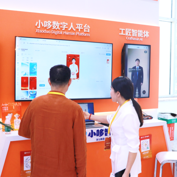 另一侧的OBVerse奥比全息舱前也排起了长队。舱内呈现的是由小哆智能为十位乡村工匠名师打造的的AI智能体。观众们兴致勃勃地与“数字工匠”实时对话,深入了解技艺背后的故事,并纷纷合影打卡。这种创新的“面对面”交流模式,让匠心技艺的数字化传承变得触手可及。
