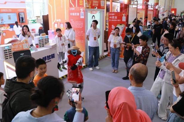 一侧是人形机器人的动感舞台。它随着音乐灵活起舞,精准的动作和充满科技感的造型,吸引了大量观众围观点赞,成为现场最具吸引力的景观之一。
