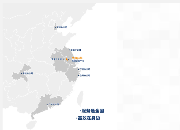 依托强大的技术实力与市场需求,盈连科技在稳步发展的同时,积极推进全国战略布局。目前,公司除南京总公司外,已在广州、滁州、天津三地成功设立分公司,实现了华南、华东、华北区域的重点覆盖。