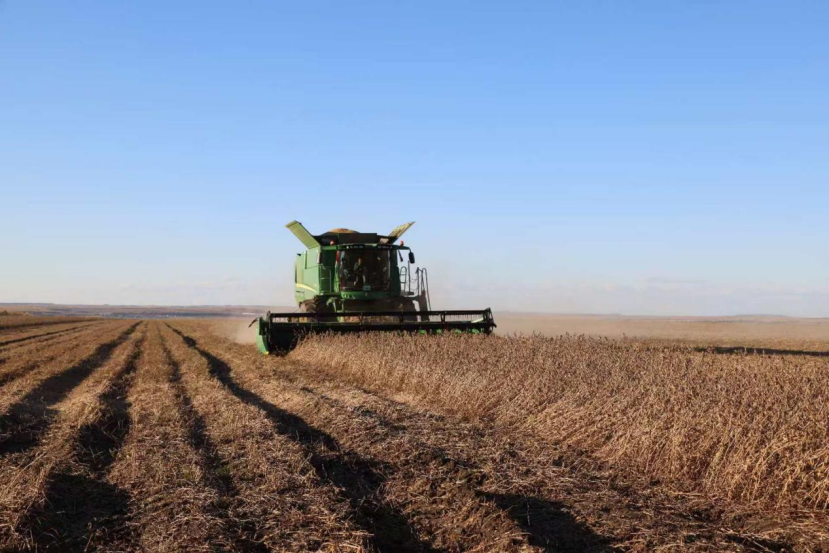 巴彦农场长势良好的大豆田正在收割