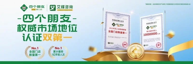 在公司价值观的指引下,“四个朋友”自助棋牌的门店布局深度契合国家县域经济发展政策,通过“总部赋能+本地化运营”模式,在三四线城市及县城激活消费潜力,带动区域就业岗位超2万个,因为有了更多的力量,品牌才能荣获150+项荣誉证书,其中包含艾媒咨询授予的”24小时无人自助棋牌室全国门店数量第一“和“累计服务年轻人100000000+人次”双项市场地位认证以及国家商务部颁发的《商业特许经营备案企业》与“2024年中国年度市场增长最快新消费品牌奖”等权威认可。