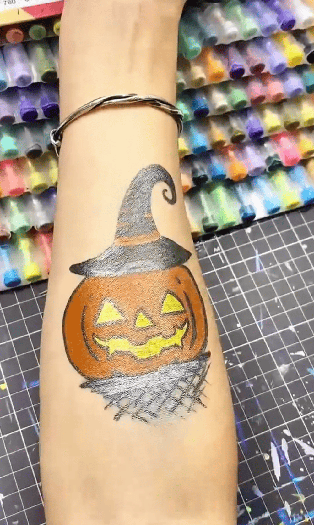 在海外,许多买家喜欢用酒精马克笔或涂鸦笔 在手臂等身体部位画图案,特别近期万圣节将近,在手上画南瓜和骨骼的需求正在快速增加,但顾虑在于:影响皮肤健康,且不易清洗。