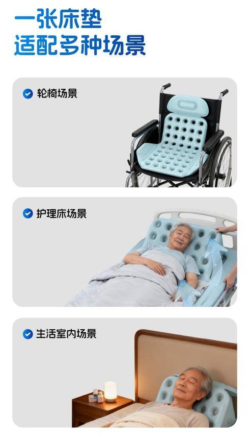 从医院康复科到家庭卧室,从卧床休养到轮椅代步,乐钦真正实现了“一张床垫,覆盖全周期护理场景”,它不再将防褥疮护理局限于某一空间或某一阶段,而是融入患者生活的每一个环节。让术后患者、长期卧床老人等群体,都能获得专业的防褥疮保护。