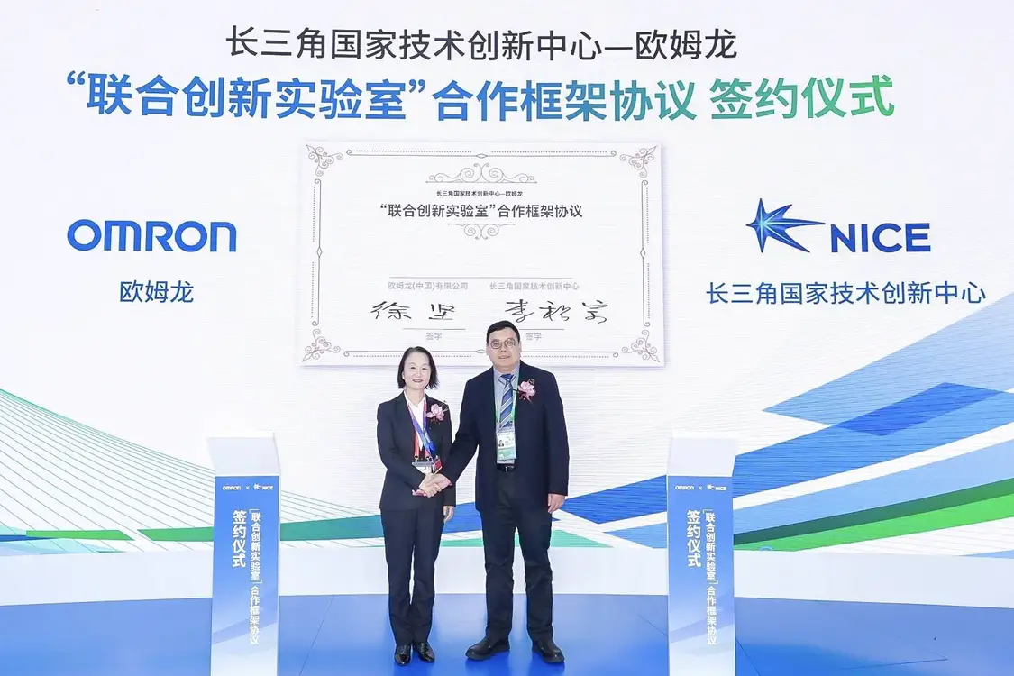 借进博“东风”,欧姆龙进一步深化本土合作与创新共建,携手长三角国家技术创新中心举行“联合创新实验室”合作框架协议签约仪式。此次合作将依托长三角区域的创新资源与产业集聚优势,结合欧姆龙在自动化与数字化转型领域的技术积累,共同探索联合研发、人才培养、治理机制与成果转化等多维度的协同路径。