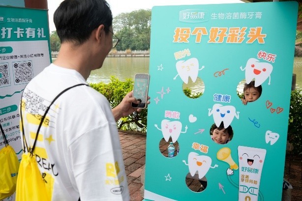 本次公益行动有多家企业踊跃参加,为市民提供活动期间的保障服务,其中生物功效牙膏品牌好易康就为此次活动注入了温暖的健康力量,在徒步活动的公益市集上,好易康的摊位以其充满趣味的“投个好彩头”游戏和暖心的礼品派发,成为了现场欢声笑语的焦点,好易康通过寓教于乐的互动,巧妙地将口腔健康知识融入轻松愉快的游戏之中,让市民在支持公益、参与运动的同时,轻松建立起“口腔健康是守护全身健康的重要防线”的认知。