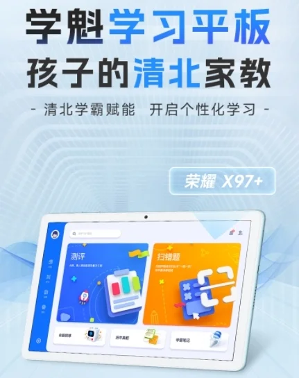 在深耕智能教辅领域的同时,学魁榜不断丰富产品矩阵。2022年11月,学魁榜推出首款智能学习解决方案——学魁学习平板,内置7000余节清北学霸视频课,覆盖初高中9大学科,搭配AI测评系统、“精准学”专属服务,通过学情分析、定制计划、在线答疑,实现学习效果质的飞跃。