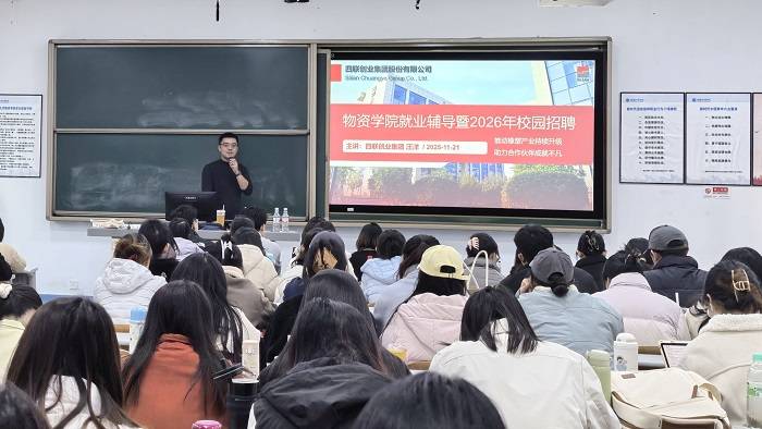 汪洋为百余名学子带来深度就业辅导课,并进行专场2026年校园招聘宣讲;同时,四联创业集团积极响应大商所产融培育倡议,联合冠通期货与北京物资学院参与“百校万才”项目,刘凯翔为学生们讲授“化工品期货服务实体经济的案例讲解”课程,结合行业一线实践经验,帮助学子们打开通往大宗商品领域的职业大门。
