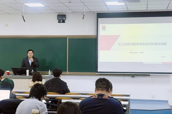 作为大商所优秀产融基地,四联创业集团积极参与“百校万才”项目,推动期货知识走进高校课堂。集团衍生品服务部经理刘凯翔为物资学院学生带来了一场生动的“化工品期货服务实体经济的案例讲解”课程,系统阐述了塑料期货与实体经济的关系。通过产业链分析及套期保值等实战案例,生动展示了期货工具如何助力企业稳定经营。