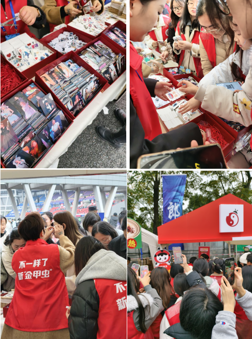 不仅有震撼的无人机秀,金甲虫更是把一如既往的宠粉和贴心发挥到极致:现场设置了金甲虫免费补妆站,给粉丝朋友圈们提供免费产品补妆使用,还准备了明星应援贴和小卡,可以说粉丝们的情绪价值拉满啦!补妆站气氛热烈,排队火爆,粉丝们纷纷前来打卡。