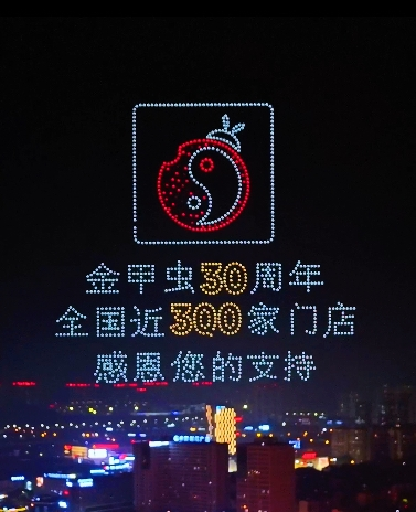 还有金甲虫30周年大型无人机表演秀震撼上演!1200架无人机齐升空,点亮酒城泸州的夜晚,让泸州的朋友狠狠感受了一把科技的美感,也让金甲虫以全新的品牌形象,刷新了酒城老百姓的印象。