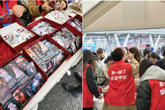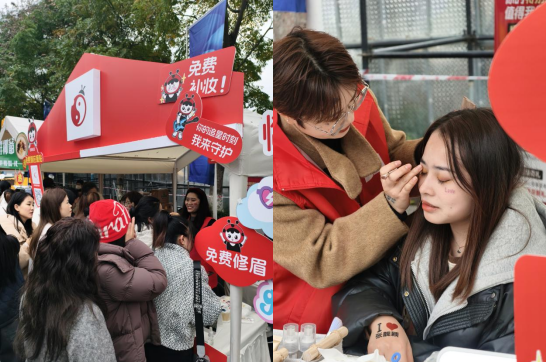 除了空中的视觉盛宴,金甲虫在演唱会现场还设置了贴心满满的“免费补妆站”。无论是唱到汗水淋漓的乐迷,还是想随时保持精致妆容的女孩,都能在这里免费补妆。更惊喜的是,现场还可领取明星应援贴纸、限定小卡等周边,引得观众排起长队打卡拍照。一位年轻乐迷笑着说:“看演唱会还能被品牌‘暖到’,金甲虫太会了!”