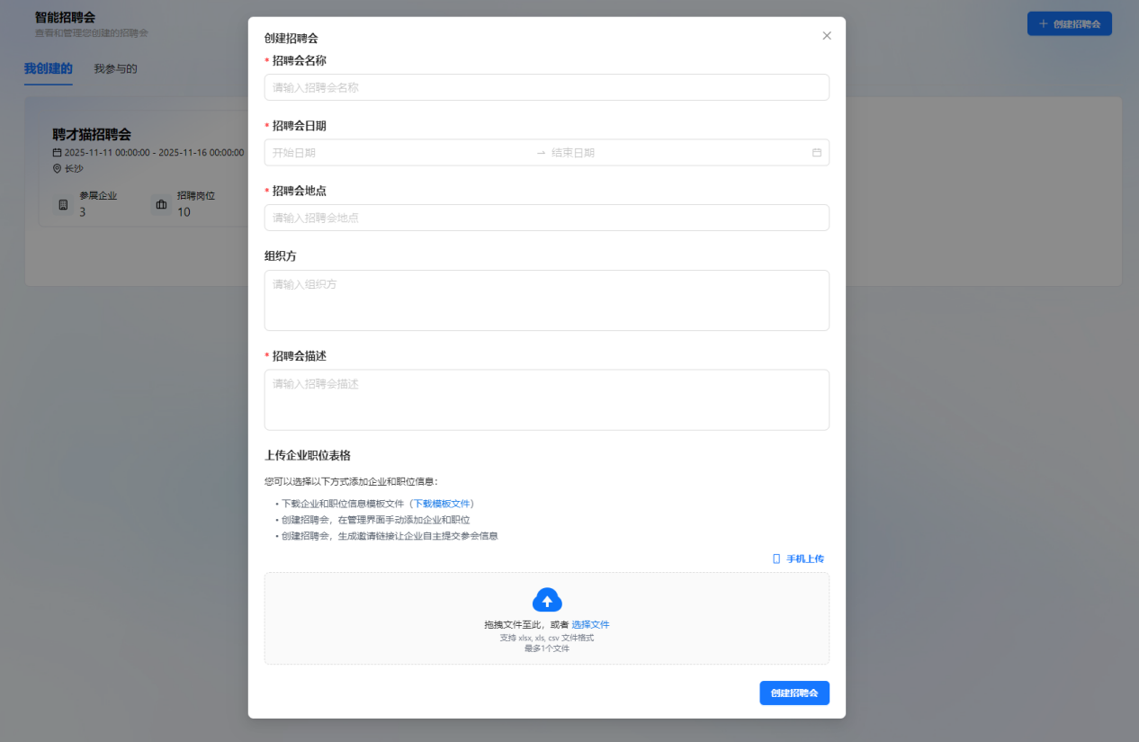 全国每年近30万场线下招聘会,传统招聘模式面临着效率低、匹配难、数据统计滞后等多重挑战。如何实现招聘会的智能化、精准化与高效化,已成为行业关注的焦点。聘才猫智能招聘会致力于通过AI技术重构招聘全流程,5分钟搭建、1秒匹配、0代码操作,让“人海战术”步入“精准时代”,为招聘会主办方、企业与求职者带来全新招聘体验。