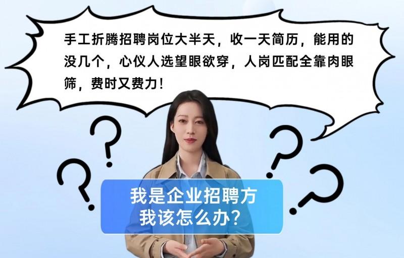 作为企业方:岗位发布繁琐、简历筛选低效、人岗匹配依赖人工等难题,招聘成本高、效果差。