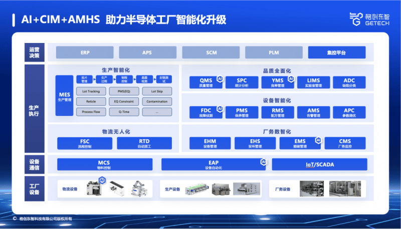 格创东智的独特优势在于深耕半导体行业所积累的“软硬融合”的一体化基因与闭环服务能力。能够赢得众多头部客户的长期信赖并实现高复购率,得益于其对半导体制造工艺的深刻理解和将AI技术无缝植入复杂场景的工程化能力。无论是MES对复杂制程的精准管控,还是EAP与上千种设备的稳定互联,或是调度系统对千台天车毫秒级响应的苛刻要求,格创东智都能基于头部客户服务实践验证的方法论提供端到端的整体交付,使其成为客户在智能化转型道路上最可靠的同行者。