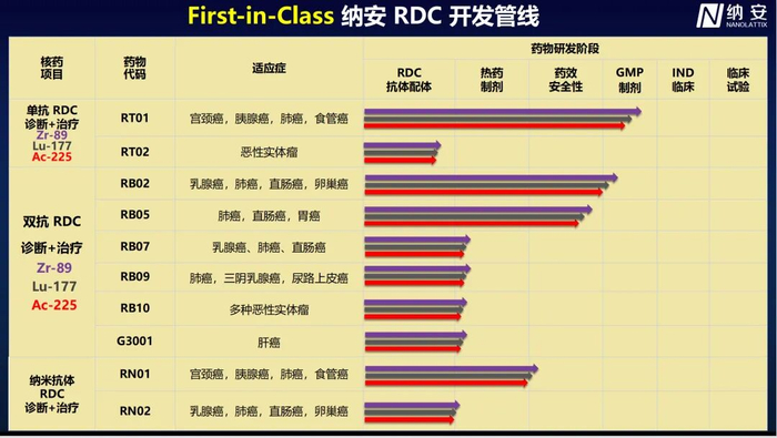 基于BioLattix平台,纳安生物已构建10余条具有全球竞争力的ADC和RDC药物研发管线,包括靶向TF的ADC药物T320以及RDC药物RT01等,适应症覆盖肺癌、乳腺癌、直肠癌、食管癌、胃癌、胰腺癌、宫颈癌、卵巢癌等多个领域。