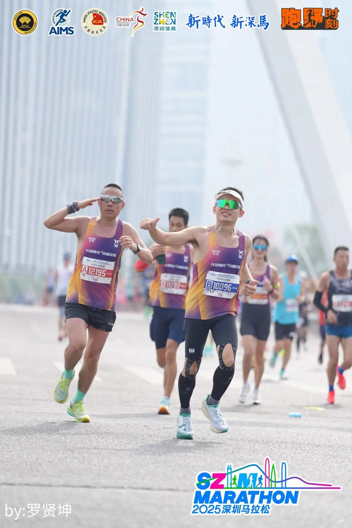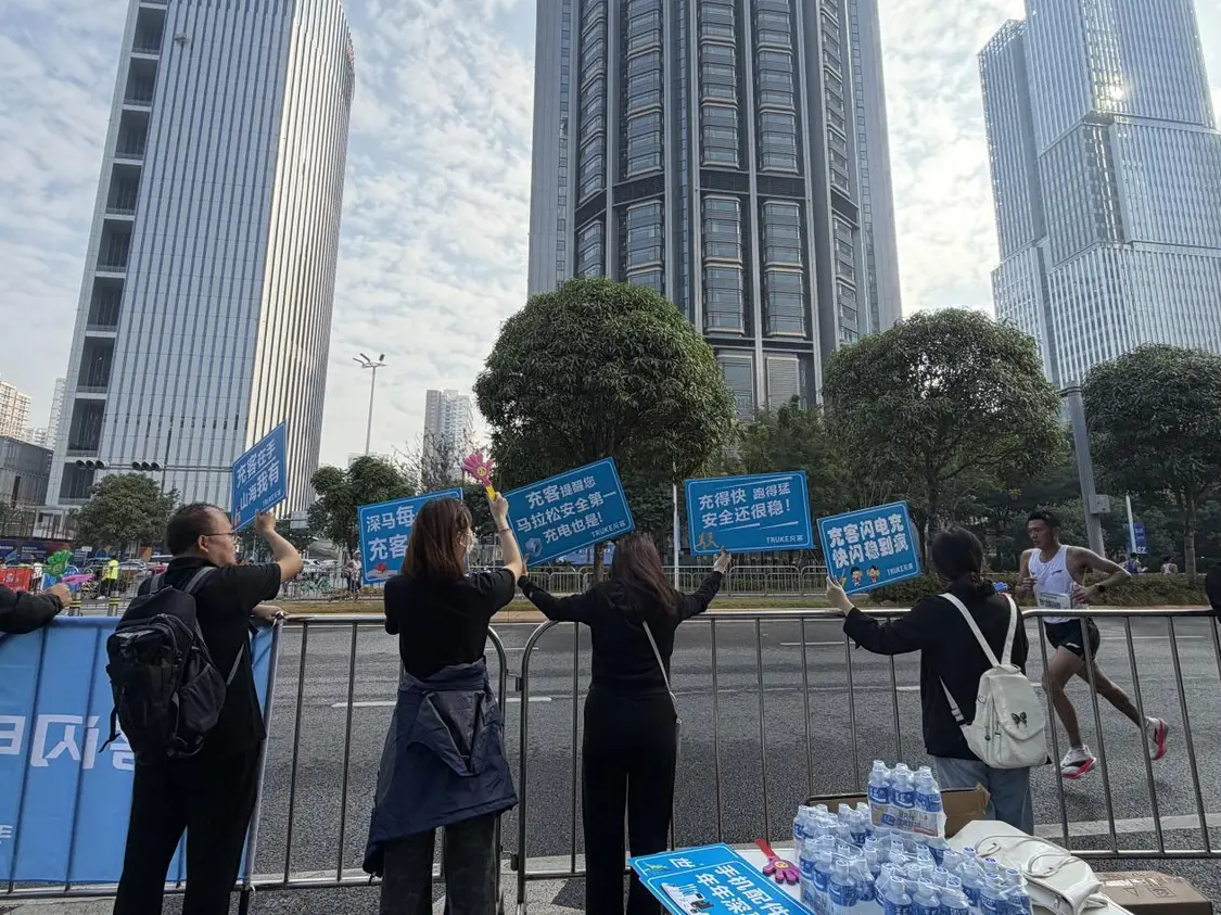 一路上,队员们相互鼓劲、用默契与坚持诠释着 “闪电队” 的速度与激情。42.195公里的征途,不仅是体力的较量,更是心态的博弈。当官方氛围组从福田的热情磅礴演绎到南山的国风雅韵,再到前海的国际化声浪,充客闪电队始终保持着高昂的斗志,频频向沿途热情的观众挥手致意。